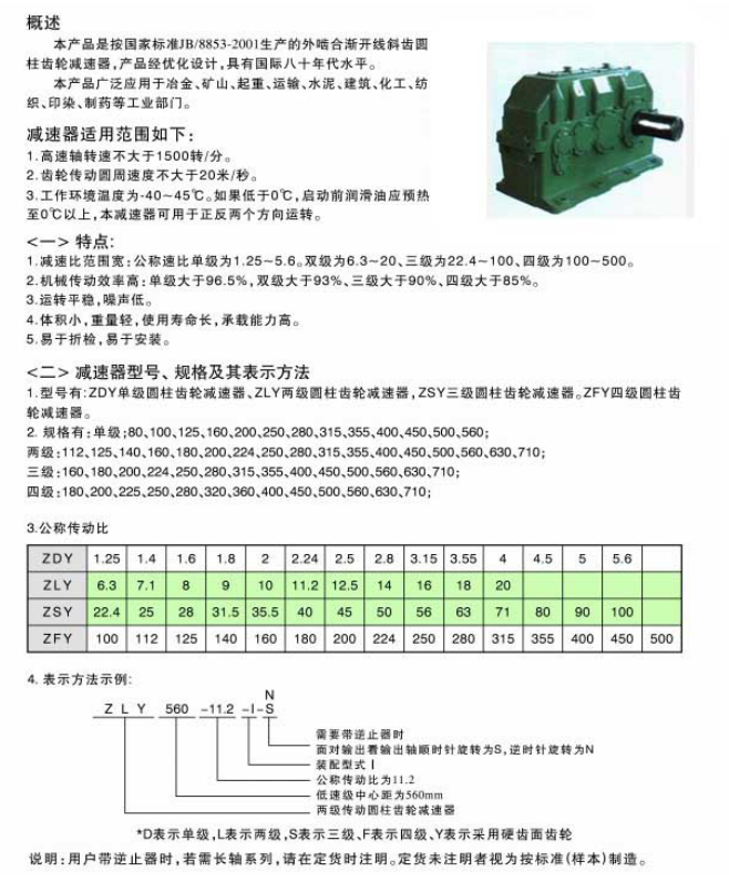 硬齿面减速器主要包括平行轴系列和垂直轴系列,平行轴减速器是按标准(GBl9004—88))生产,产品经优化设计,具有国际八十年代先进水平,它主要包括ZDY(单级)、ZLY(两级)、ZSY(三级)和ZFY(四级)四大系列,垂直轴减速器是按标准(JB/T9002—1999)生产,用于输入轴与输出轴呈垂直方向布置的传动装置,它主要包括DBY、DCY和DFY三大系列。